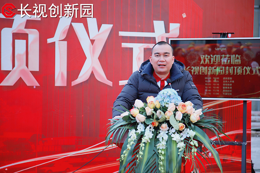 典礼最初一环,各带领和宾客移步到楼顶用铁锹封顶,象征着长视立异园封顶典礼美满竣事。