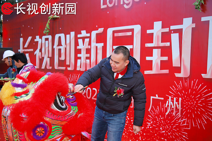 典礼上醒狮扮演队约请了长视科技总裁全绍军和伟晋团体董事长毛米方为醒狮点睛,并约请了长视科技总裁全绍军与副总裁陈明伟接青,象征着长视立异园吉利快意,畅旺发财。